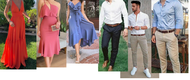 Queremos que estejam confortáveis e elegantes em nosso casamento. Sugerimos o traje social leve, como alguns conhecem, com vestidos midi...